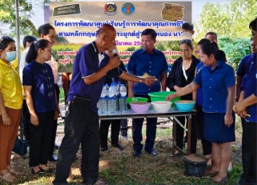 โดยมีปราชญ์ชาวบ้านร่วมเป็นวิทยากรให้ความรู้ในการขับเคลื่อนการดำเนินงานศูนย์เรียนรู้โคกหนองนาและการทำปุ๋ยหมักชีวภาพ การทำEM Ball บำบัดน้ำเสีย และการทำแซนด์วิชปลา